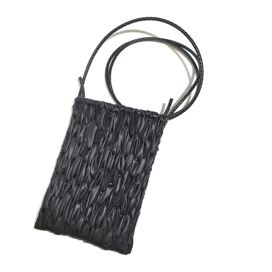 Phone bag. Black ribbon yarn, net, strap. No button style. But, we can use it without magnet button, because net is used. The net holds the entrance tightly. (No strap at...